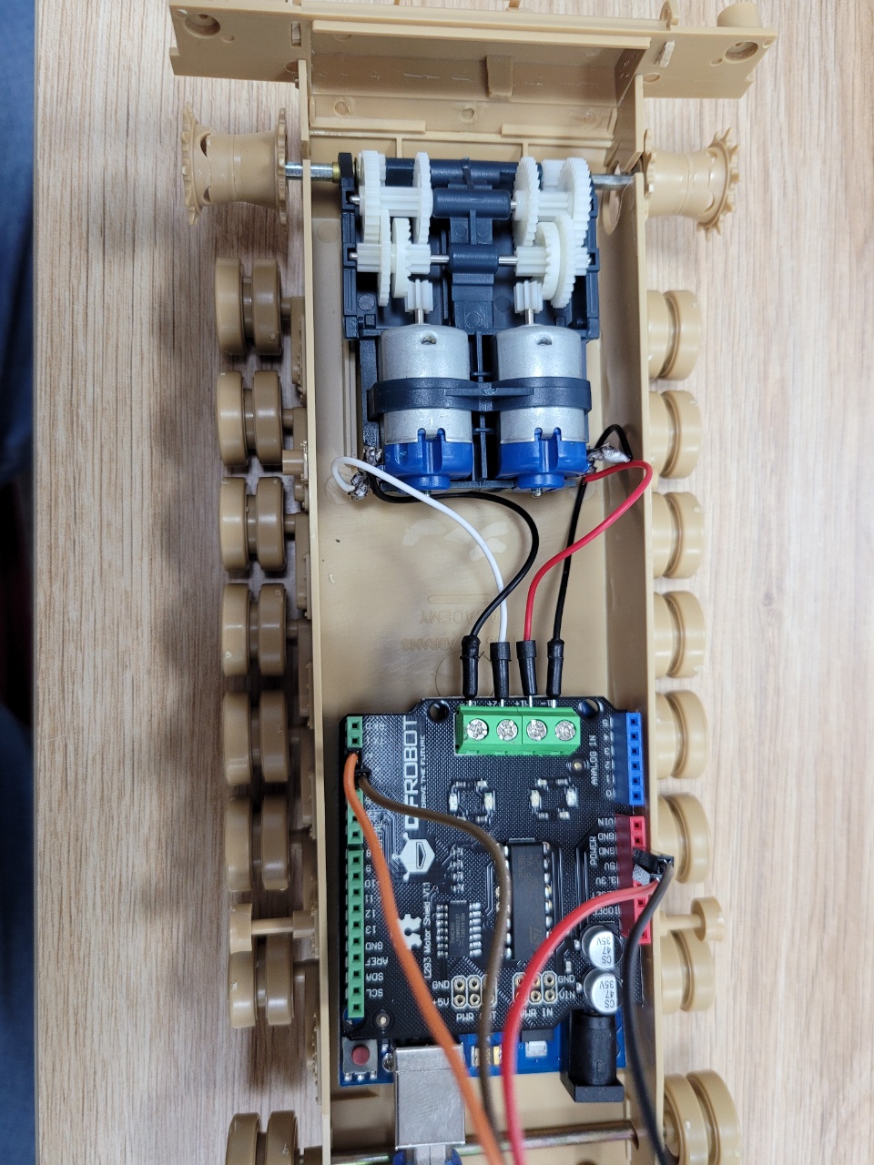 - 공중에 뛰워놓고 있을때는 잘돌아가는데 궤도가 지면에 닿으면 마찰력때문에 기어박스의 톱니들이 헛도는