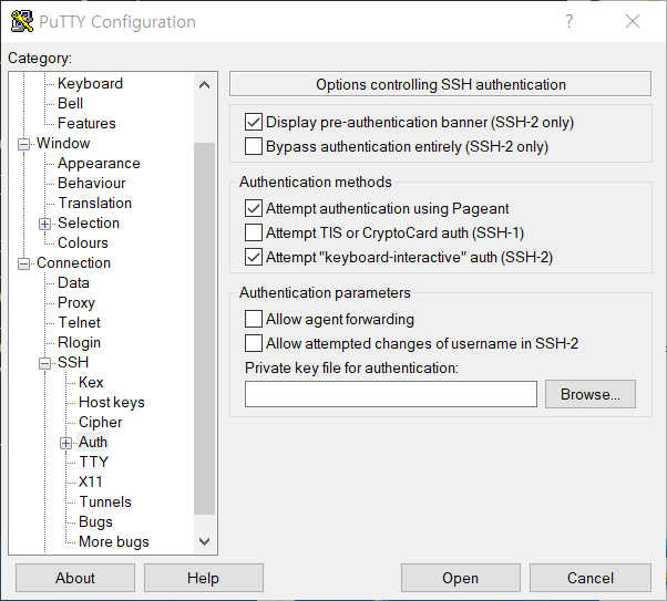 - putty 에서 browser 버튼을 클릭후 생성한 ***.ppk를 선택하여 접속한다.