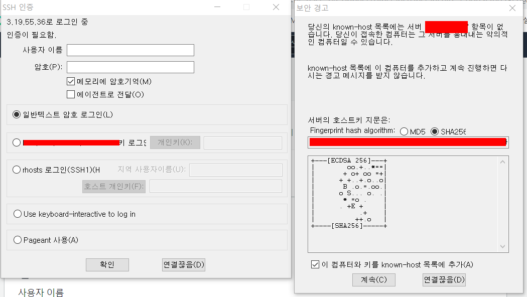 그리고 RSA/DSA//ECDSA/ED25519키 로그인을 체크하고