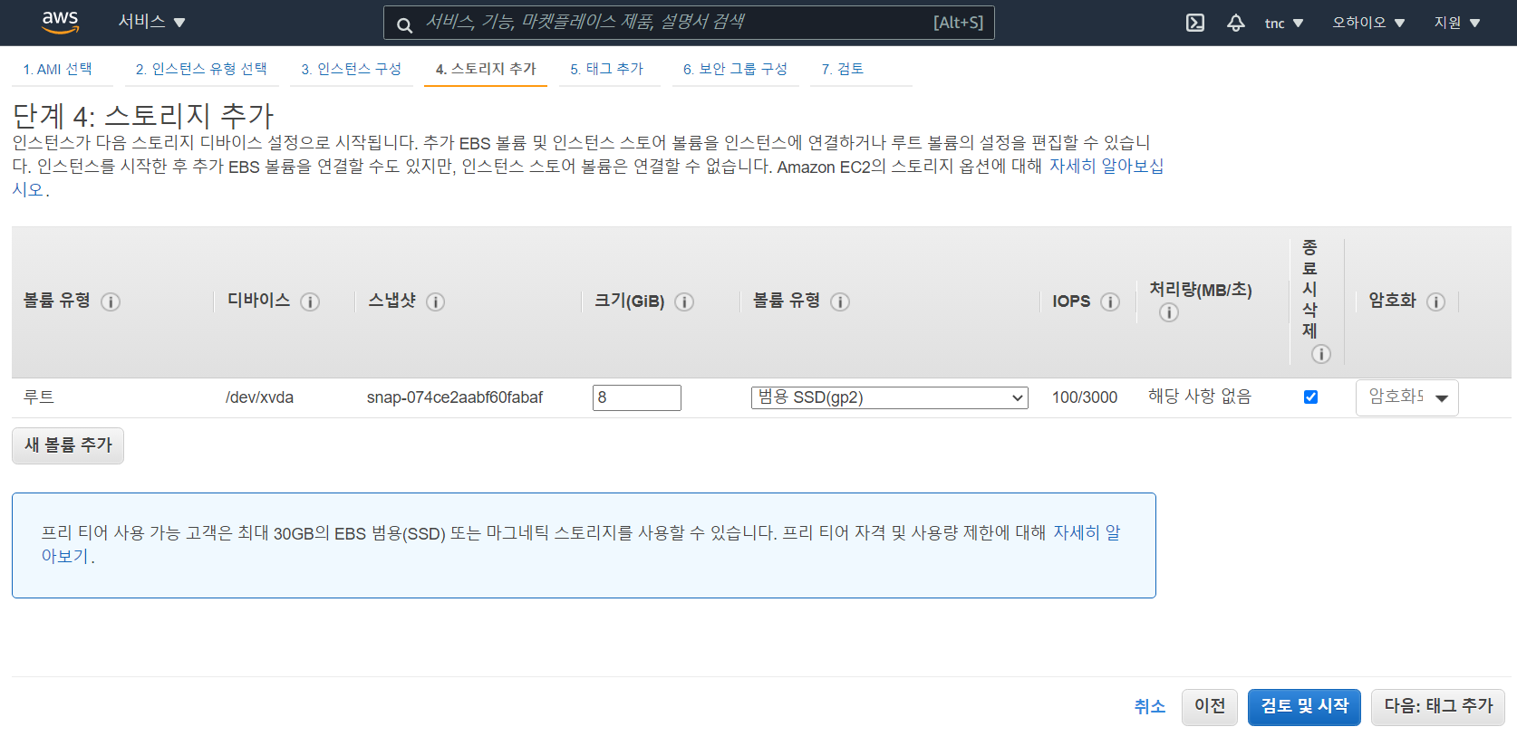 - 볼륨 유형 : SSD 가 두 종류가 있는데 , 프로비져닝된 IOPS SSD 가 있는데 이는 직접 저장장치의 속도를 지정할 수 있다 .