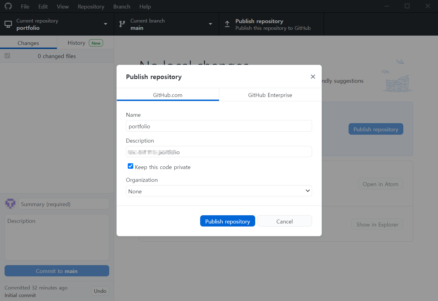 그리고 아직은 인터넷에 올라 가지 않았기 때문에 파란색 Publish Repository 버튼을 눌러서
