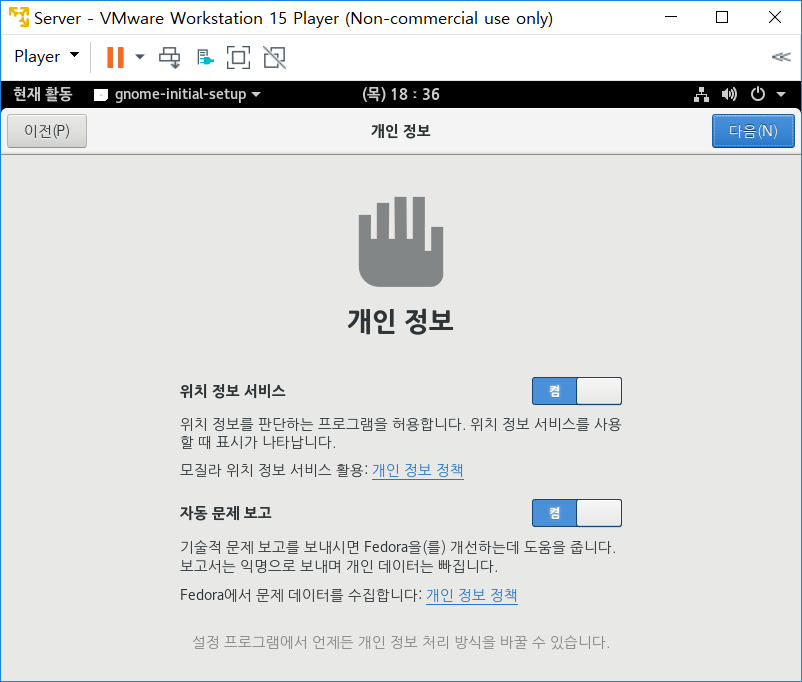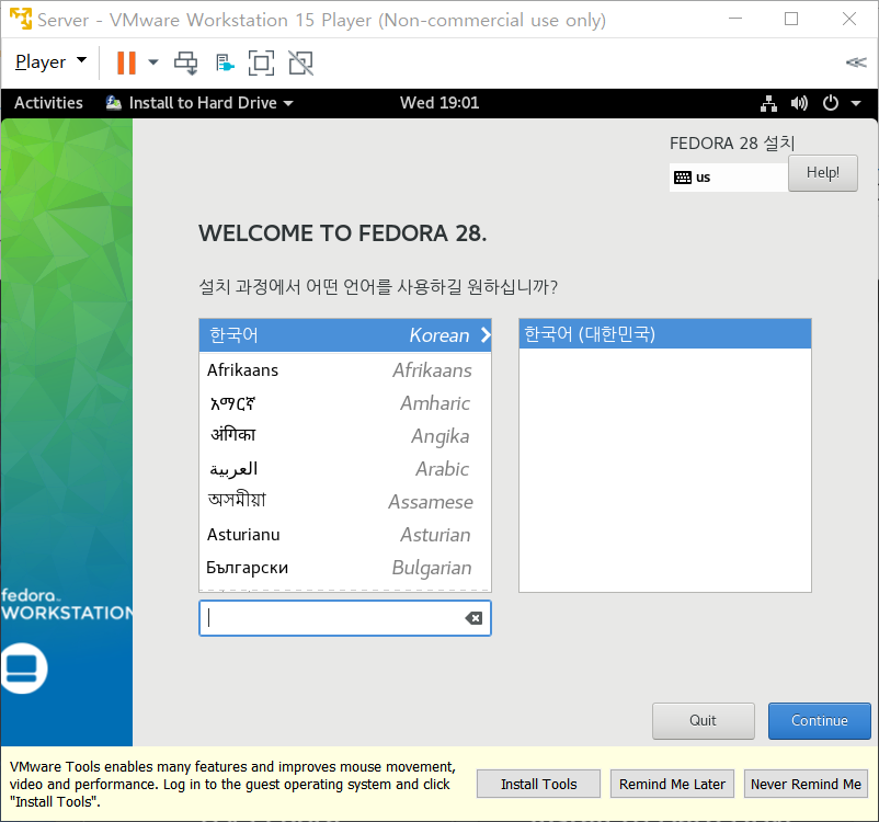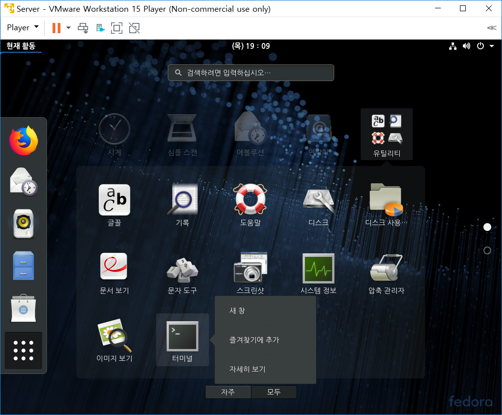 다음과 같이 [Welcome to Fedora] 화면이 나온다.