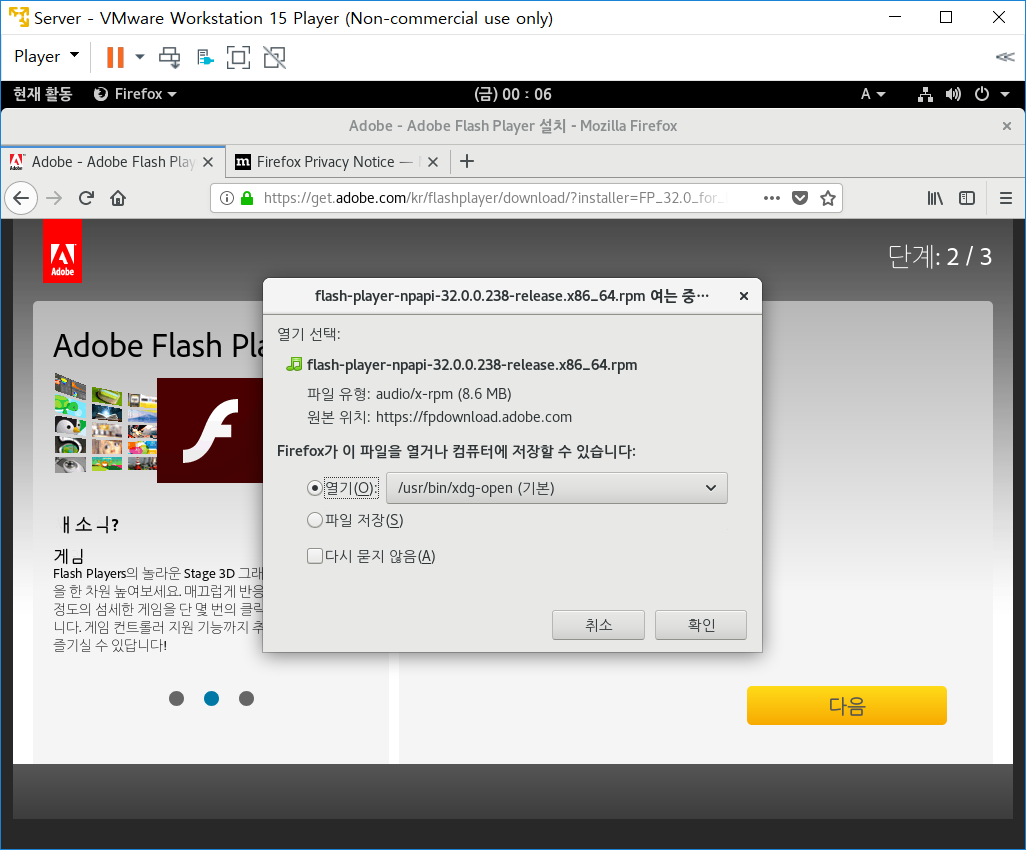 ● Firefox 웹 브라우저에 플래시 플레이어 설치