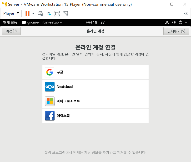 [온라인 계정 연결]에서는 그대로 두고 <건너 뛰기> 를 클릭한다.