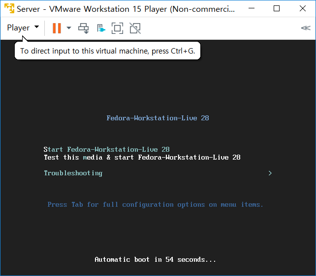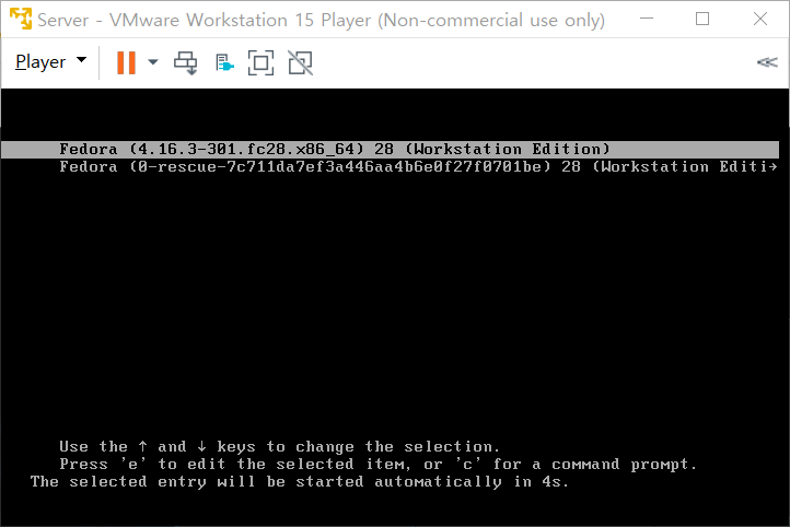 다음과 같은 화면이 나오면 [Start Fedora-Workstation-Live 28]를 선택하고 Enter를 누른다.