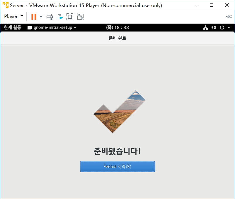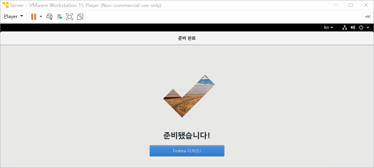 [준비 완료]에서 <Fedora 시작>을 클릭한다.