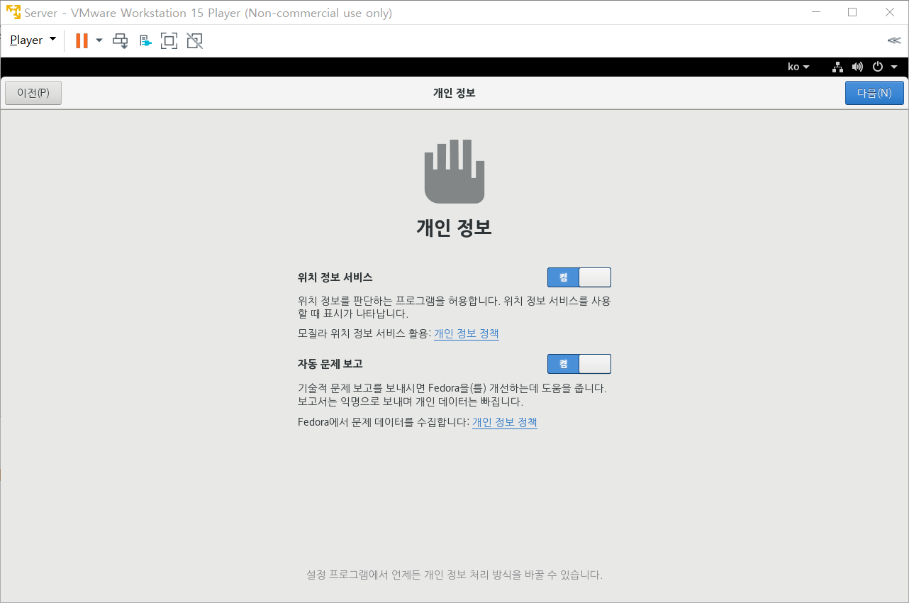 [개인 정보]에서는 그대로 두고 <다음>을 클릭한다.