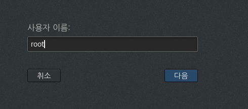 [사용자 이름]에 'root'를 입력하고 <다음>을 클릭한다.