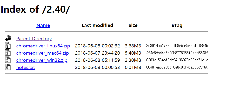 https://chromedriver.storage.googleapis.com/index.html?path=2.40/