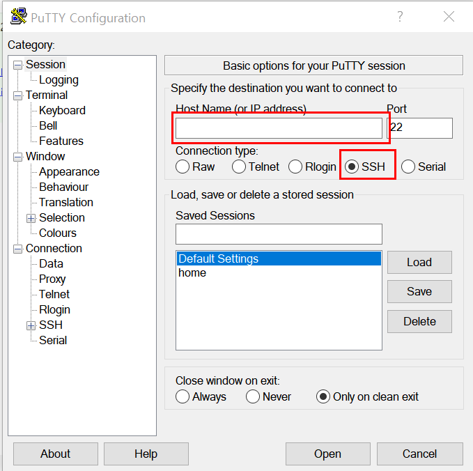 2. Client 에 해당하는 다른 PC에서 putty 설치 후 접속 한다.