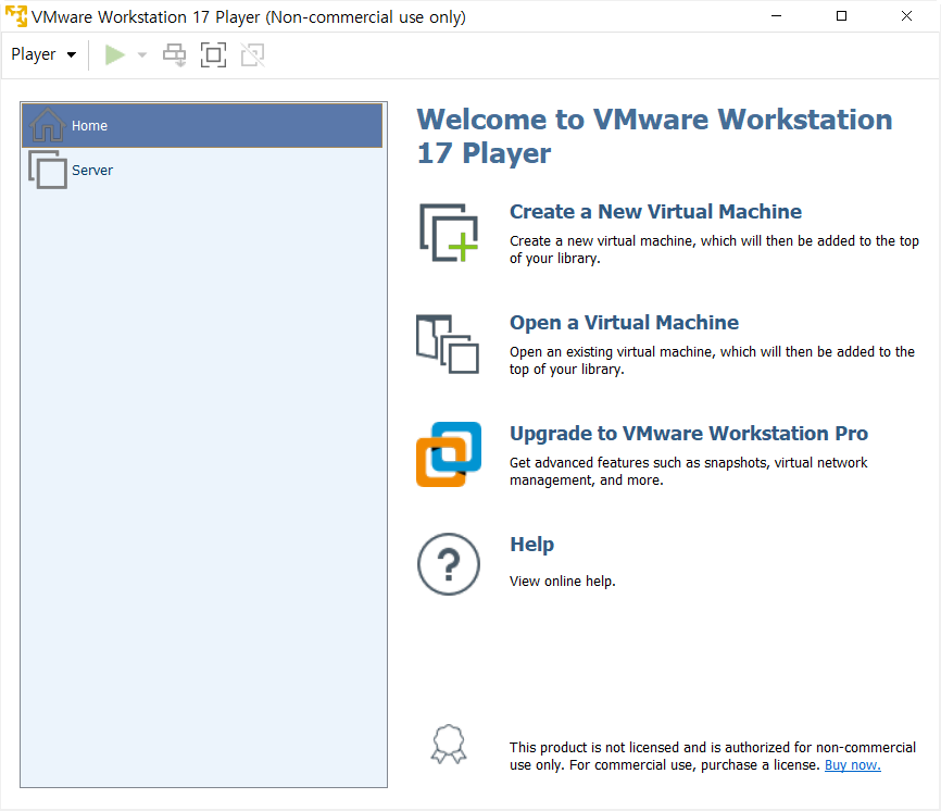 2. 아래처럼 "Workstation Player"를 클릭 한다.