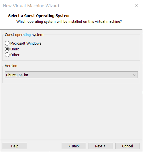 [Version]부분의 드롭다운 리스트를 클릭해서 [Ubuntu 64-bit]를 선택한 후 <Next>를 클릭한다.
