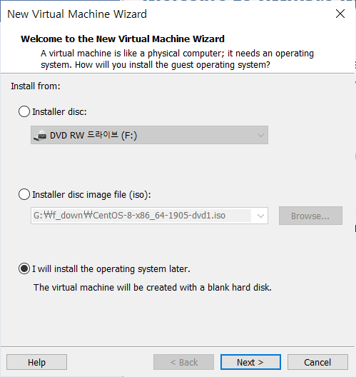[I Will install the operating system later] 를 선택한 후 <Next>를 클릭한다.