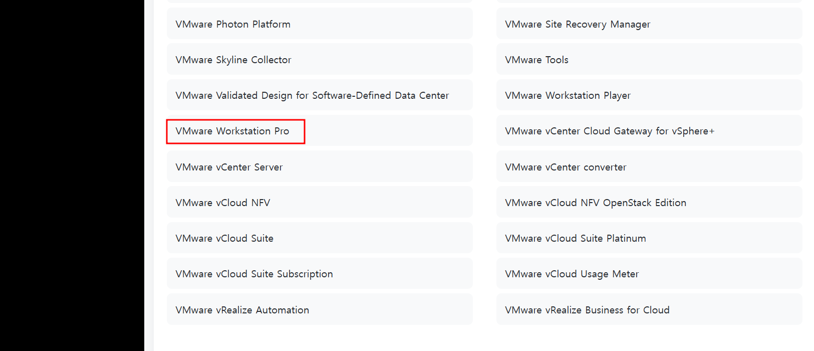 5. 오른쪽에서 VMware Workstation Pro 선택한다.