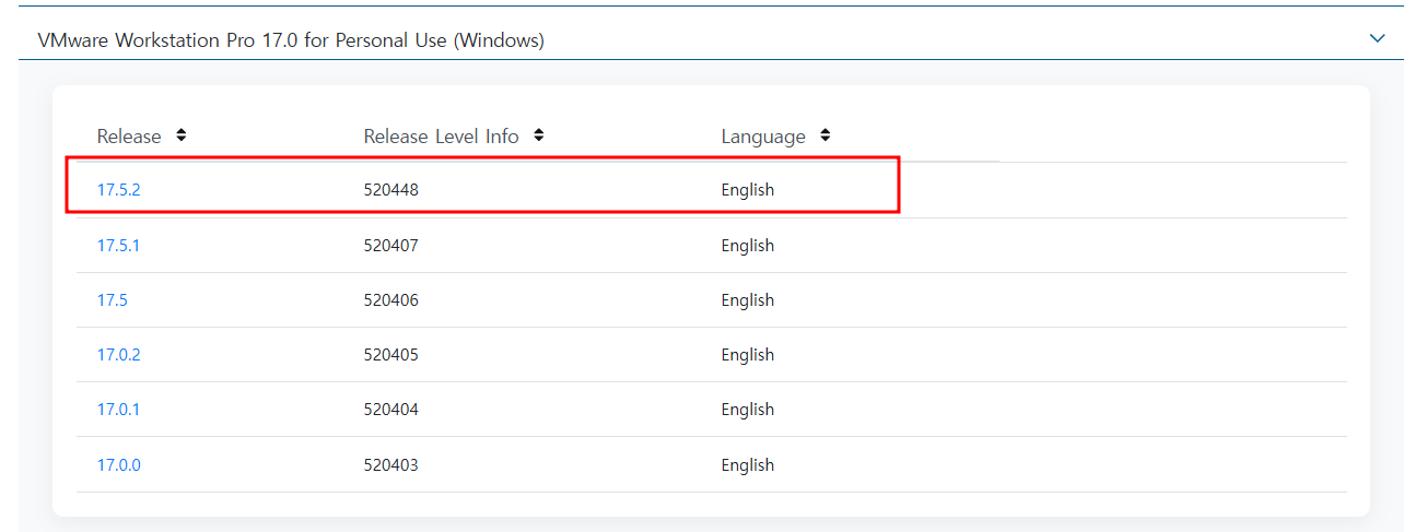 7. 최신버전을 선택하여 클릭한다. 2024년 8월8일 기준으로 최신 버전은 17.5.2 입니다.