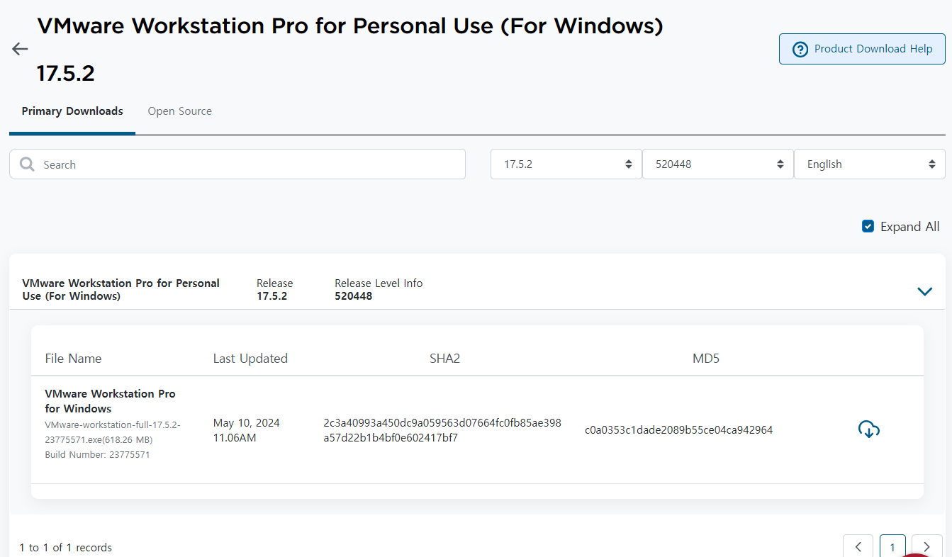 이에 따라 VMware를 다운로드 하는 방법이 변경됨.