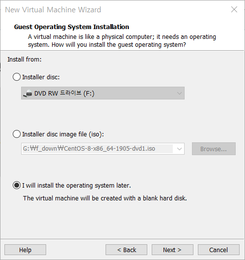 5. 운영체제 설치는 나중에 하고 일단 빈 하드디스크만 생성한다.