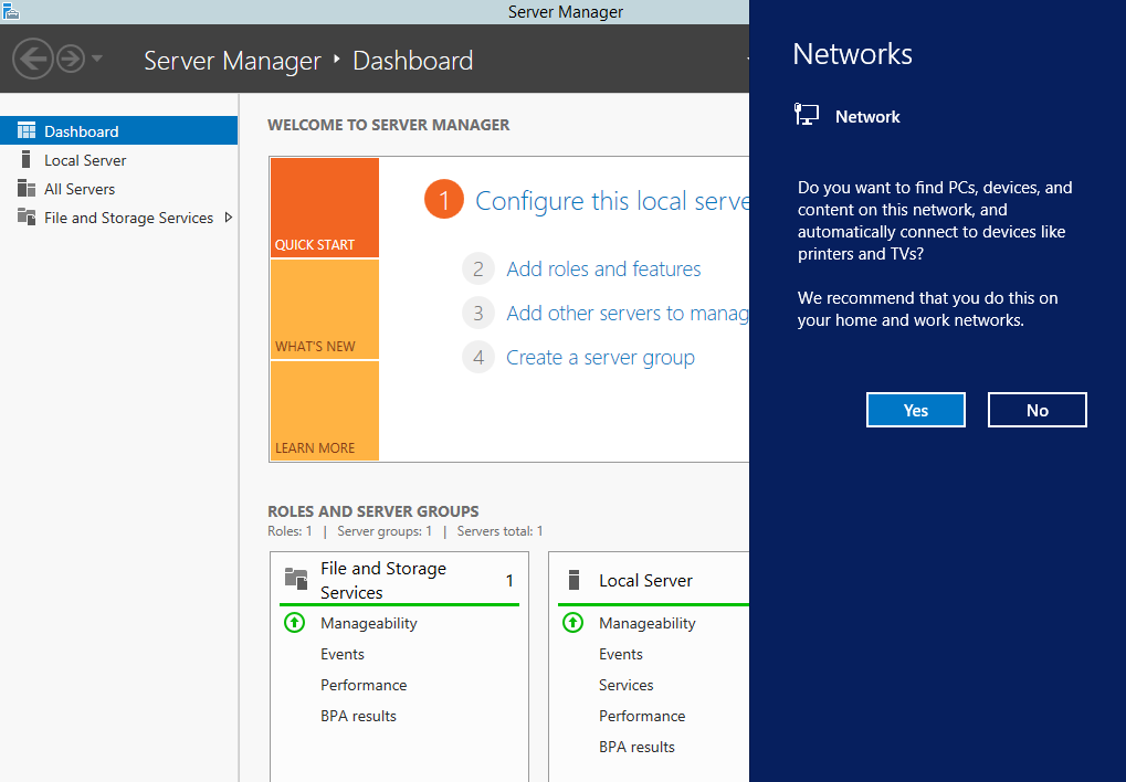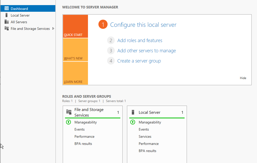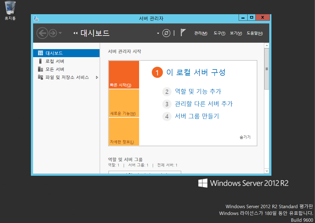 12. 자동으로 [Server Manager]창이 뜬다. 여기에서는 서버와 관련된 여러 가지 설정을 할 수 있다.