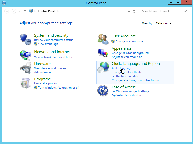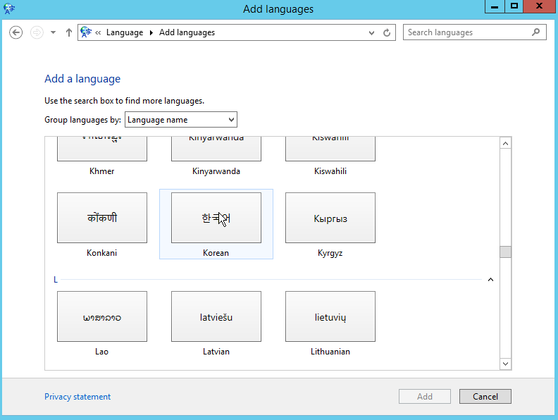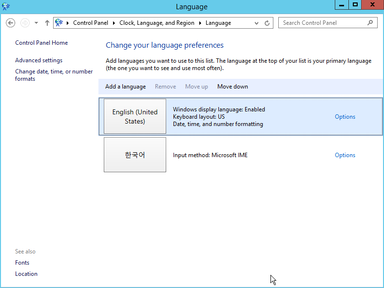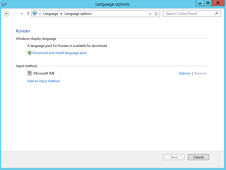 Clock, Language, and Region 아래의 [Add a language] 를 클릭한 후