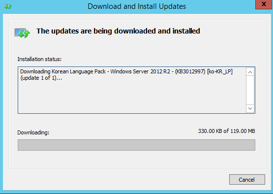 16. [ Download and install language pack ] 을 클릭하면 인터넷에 접속하여 바로 언어팩을 내려 받아 설치할수 있다.